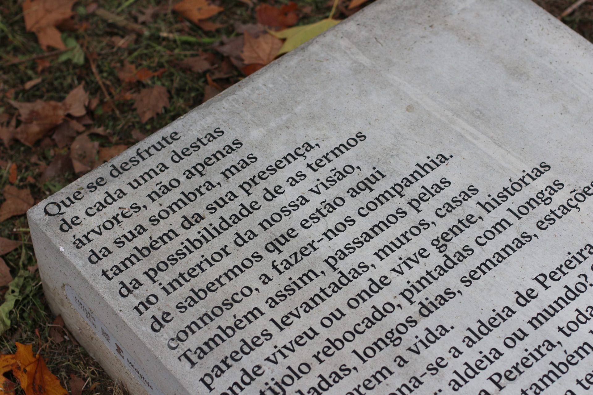 Que se desfrute de cada uma destas árvores, não apenas da sua sombra, mas também da sua presença, da possibilidade de os termos no interior da nossa visão, de sabermos que estão aqui connosco, a fazer-nos companhia. Também assim, passamos pelas paredes levantadas, muros, casas onde viveu ou onde vive gente, histórias de tijolo rebocado, pintadas com longas pinceladas, longos dias, semanas, estações a preencherem a vida.