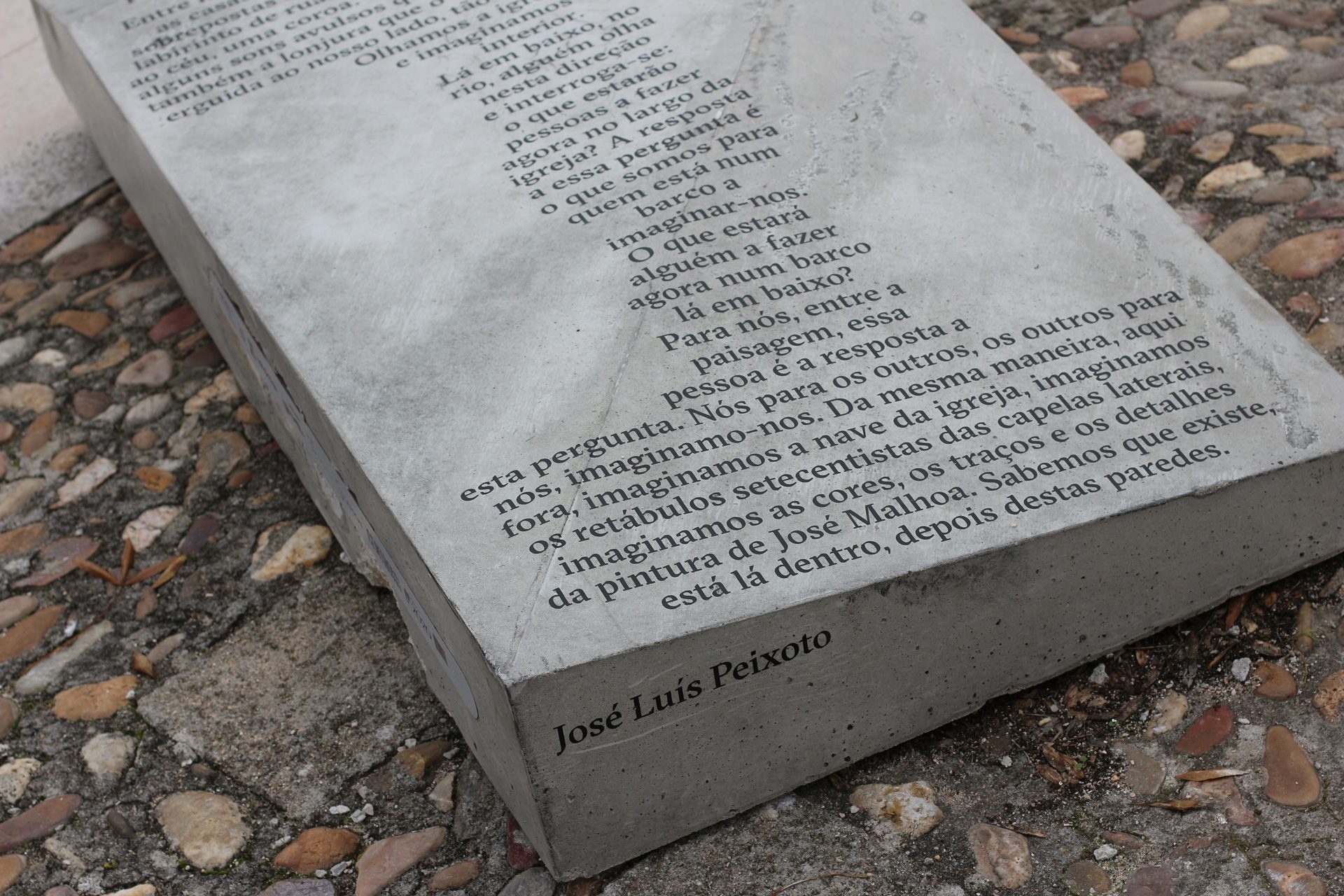 O que estará alguém a fazer agora num barco lá em baixo? Para nós, entre a paisagem, essa pessoa é a resposta a esta pergunta. Nós para os outros, os outros para nós, imaginamo-nos. Da mesma maneira, aqui fora, imaginamos a nave da igreja, imaginamos os retábulos setecentistas das capelas laterais, imaginamos as cores, os traços e os detalhes da pintura de José Malhoa. Sabemos que existe, está lá dentro, depois destas paredes.
