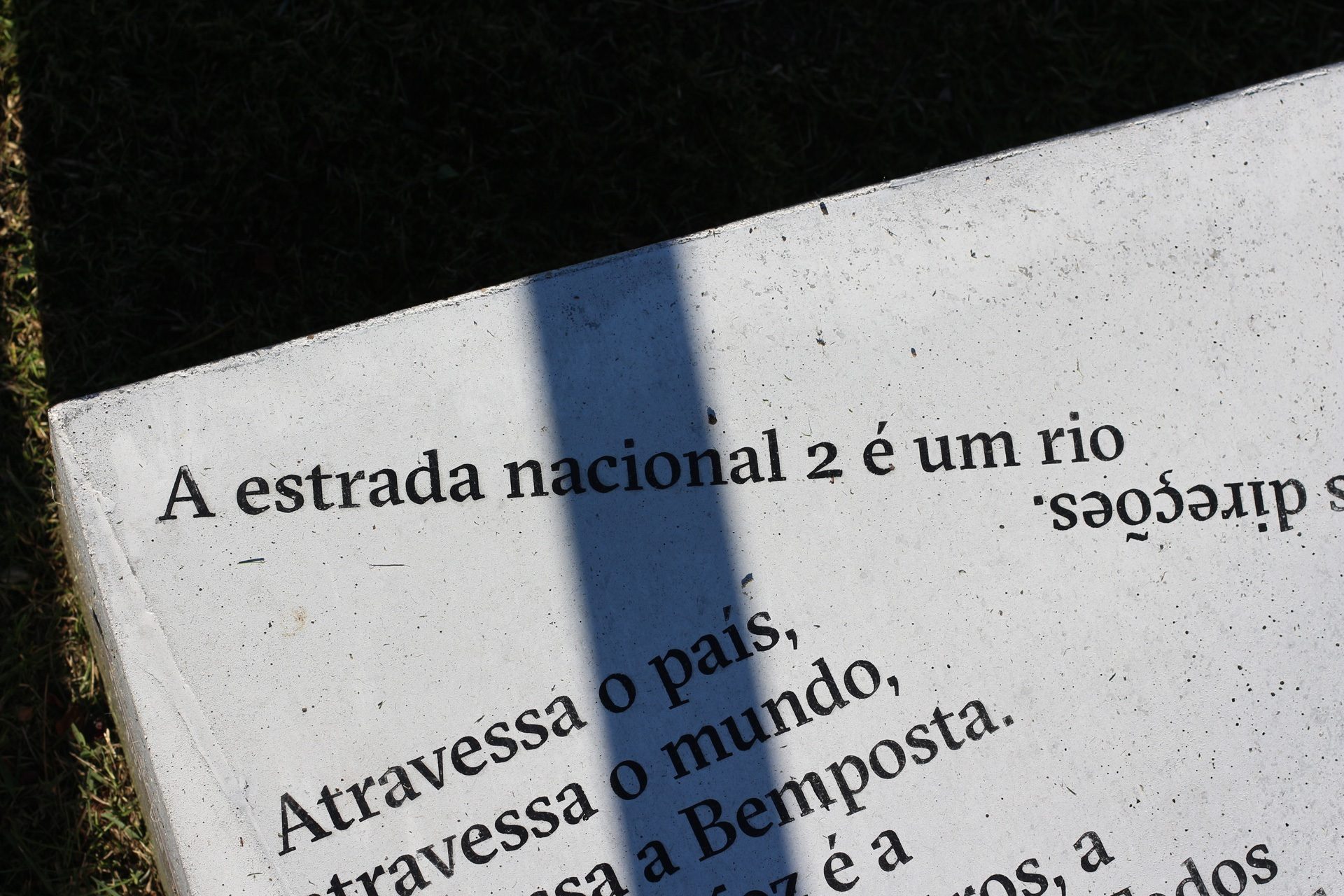A Estrada Nacional 2 é um rio que corre nas duas direções. Atravessa o país, atravessa o mundo, atra- vessa a Bemposta. Para uns, a foz é a nascente; para outros, a nascente é a nascente. Todos os que passam por esta estrada, numa ou noutra direção, levam um pouco da Bemposta consigo. Esse carrego pode ter muitas formas: a firmeza desta terra que nos sustenta, a sombra destas árvores, a luz. Talvez se iluminem também pela vivacidade das crianças a brincarem no recreio, no outro lado da estrada, na outra margem; ou talvez lhes toque a discreta contemplação de quem se senta nestes bancos, nesta margem, sem pressa.