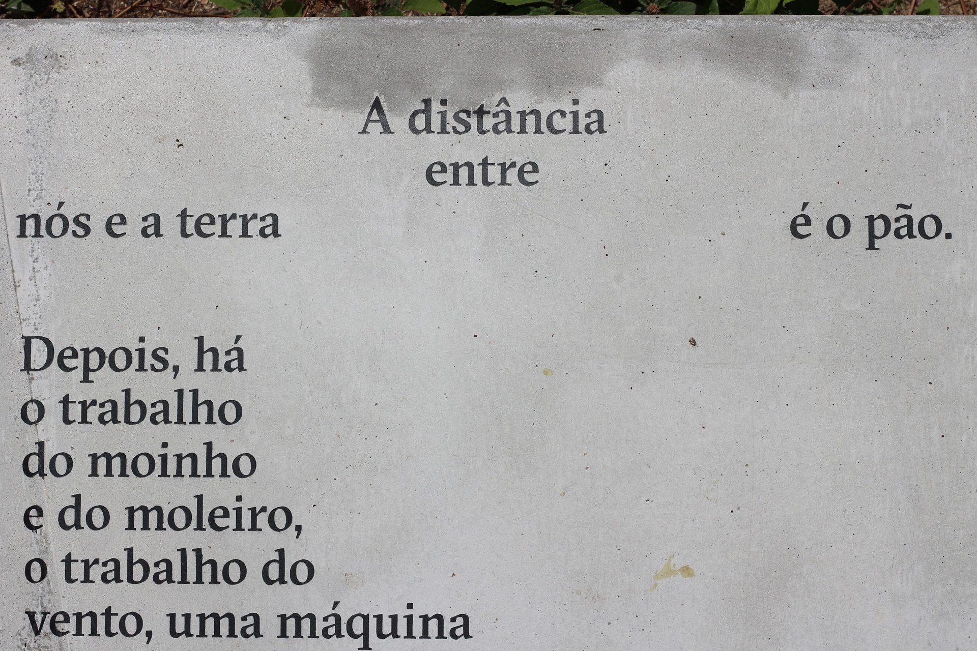 Numa ponta desse caminho, estão as raízes finas que alimentam o trigo, a seiva que sobe ao longo do caule, o dourado que cobre a espiga. Depois, há o trabalho do moinho e do moleiro, o trabalho do vento, uma máquina formada por esses três corpos, ligados uns aos outros como rodas dentadas, todos eles essenciais, visíveis ou invisíveis. Depois, com água, sal e fermento, há os gestos que repetem os gestos que as nossas avós fizeram. O pão que elas amassaram foi necessário para que se chegasse a este que, depois do forno, depois de alinhado com a pá na superfície do forno, partimos, a côdea a estalar, e depenicamos entre o polegar e o indicador, pão português.