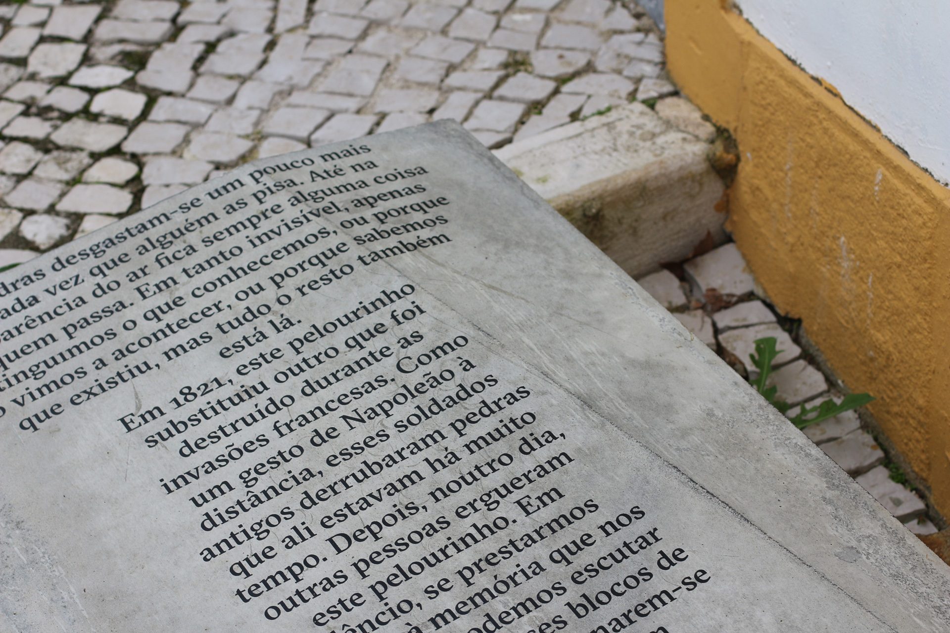 Em 1821, este pelourinho substituiu outro que foi destruído durante as invasões francesas. Como um gesto de Napoleão à distância, esses soldados antigos derrubaram pedras que ali estavam há muito tempo. Depois, noutro dia, outras pessoas ergueram este pelourinho. Em silêncio, se prestarmos atenção à memória que nos antecede, podemos escutar o estrondo desses blocos de granito a desmoronarem-se. Podemos também escutar o ruído das ferramentas e das vozes durante a construção. Podemos mesmo dar alguns passos, ir até ao pelourinho e encostar a mão à pedra, sentir as estrias da sua rugosidade.