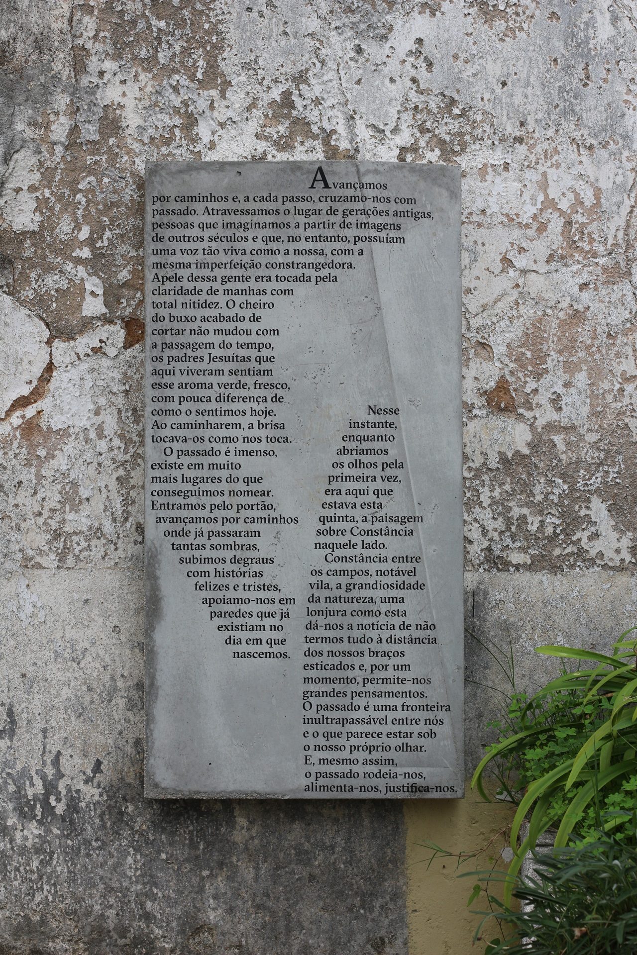 O passado é imenso, existe em muito mais lugares do que conseguimos nomear. Entramos pelo portão, avançamos por caminhos onde já passaram tantas sombras, subimos degraus com histórias felizes e tristes, apoiamo-nos em paredes que já existiam no dia em que nascemos. Nesse instante, enquanto abríamos os olhos pela primeira vez, era aqui que estava esta quinta, a paisagem sobre Constância naquele lado.