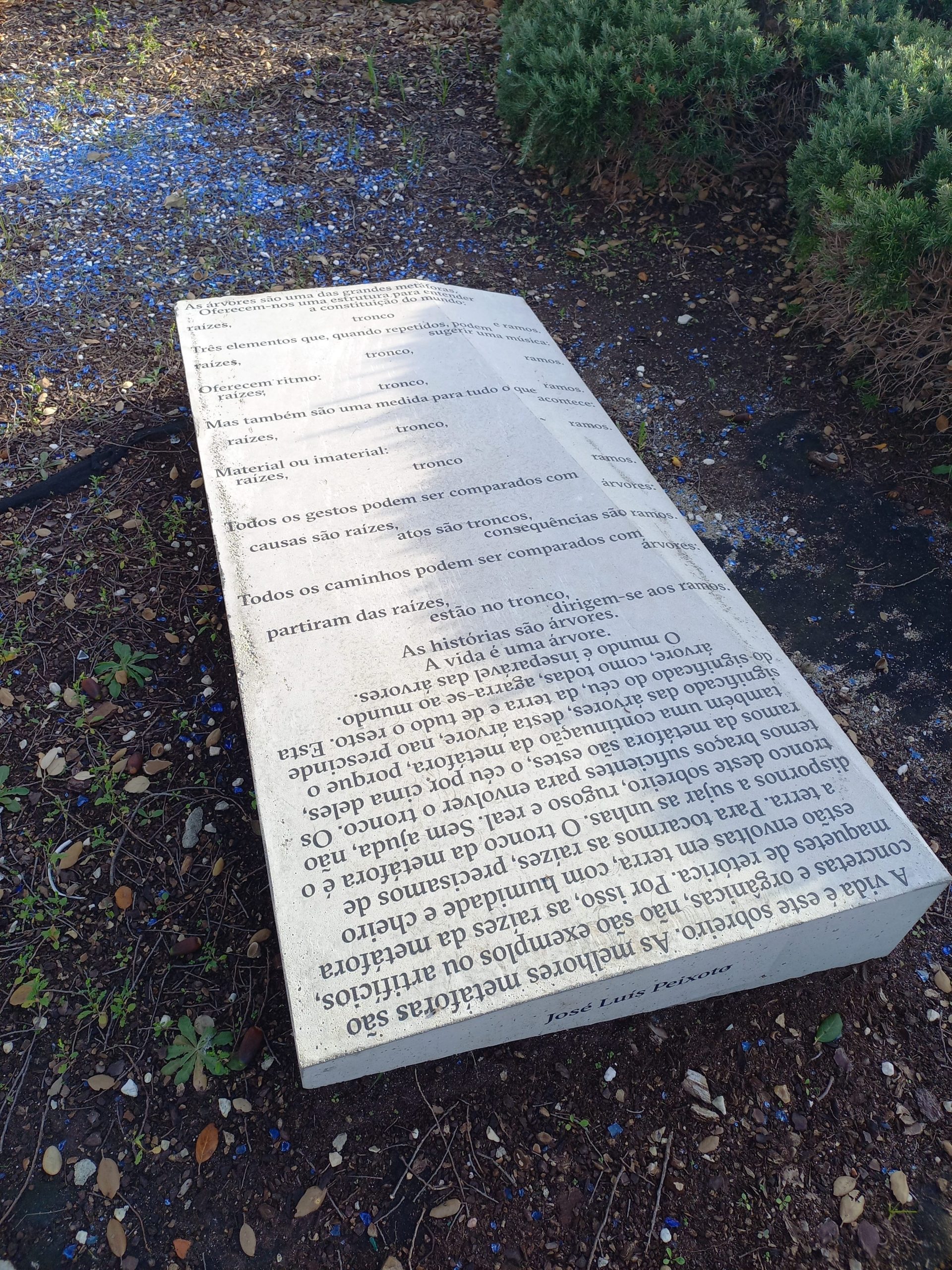 A vida é este sobreiro. As melhores metáforas são concretas e orgânicas, não são exemplos ou artifícios, maquetes de retórica. Por isso, as raízes da metáfora estão envoltas em terra, com humidade e cheiro a terra. Para tocarmos as raízes, precisamos de dispor-nos a sujar as unhas. O tronco da metáfora é o tronco deste sobreiro, rugoso e real. Sem ajuda, não temos braços suficientes para envolver o tronco. Os ramos da metáfora são estes, o céu por cima deles, também uma continuação da metáfora, porque o significado das árvores, desta árvore, não prescinde do significado do céu, da terra e de tudo o resto. Esta árvore, como todas, agarra-se ao mundo. O mundo é inseparável das árvores.